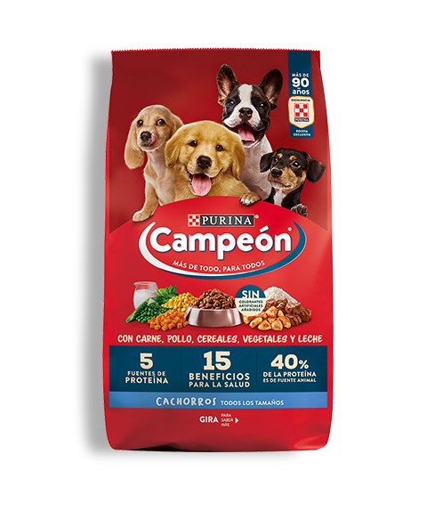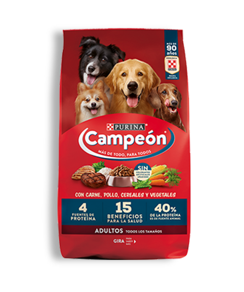 En Purina® CAMPEÓN te ofrecemos un alimento que, al igual que tu perro, también lo tiene TODO.